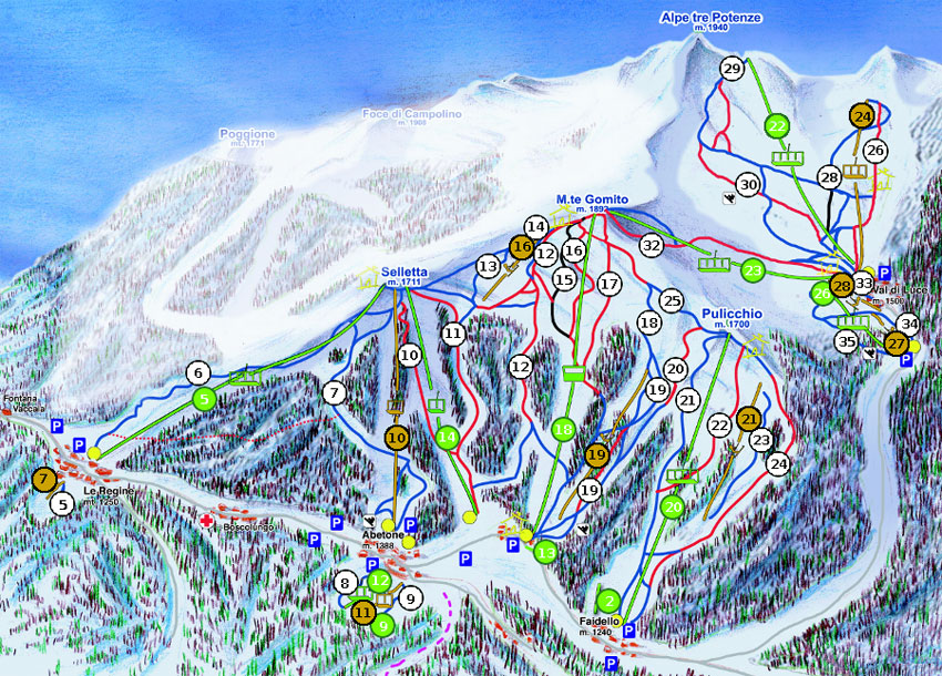 L' ideale ubicazione degli impianti di risalita consente la pratica dello sci e dello snow-board con soluzione di continuità lungo piste famose, ideate da grandissimi campioni abetonesi. Innevatissime e perfettamente preparate, sciabili anche nei mesi primaverili, ora snodate in ampi plateau, ora contornate da faggi ed abeti secolari.
